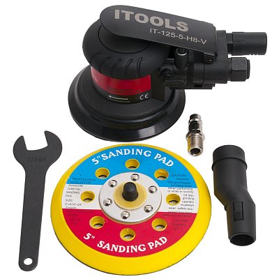 ITOOLS IT-125-5-H8-V Машинка шлифовальная пневматическая, орбита 5мм, подложка 125мм, с 8 отверстиями можно купить по выгодной оптовой цене. Забрать товар можно самовывозом со склада-магазина в Дмитрове или выбрать доставку по Тайге транспортной компанией при оформлении заказа.